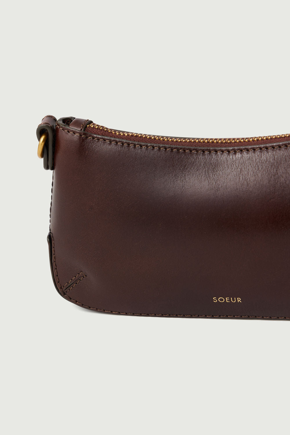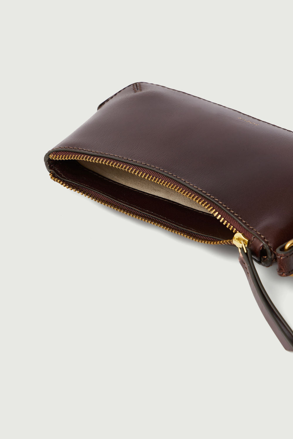 - Glossy Brown Leather Zipped Wallet